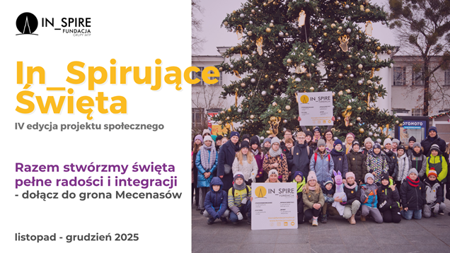 Wspólnie zapraszamy dzieci i seniorów w świat Świąt Bożego Narodzenia Fundacja In_Spire organizuje co roku wspólnie z Partnerami projekt „In_Spirujące Święta”. To cykl wydarzeń w listopadzie i grudniu dla dzieci, młodzieży i seniorów z Poznania i Wielkopolski, które pozwalają im poczuć atmosferę zbliżających się Świąt Bożego Narodzenia. Wydarzenia te powiązane są z Jarmarkiem Bożonarodzeniowym na Międzynarodowych Targach Poznańskich. Podczas spotkań mali i duzi uczestnicy nie tylko się bawią, ale także uczą i wspólnie spędzają czas. Organizacja projektu co roku jest możliwa dzięki wsparciu Partnerów fundacji – poznańskich instytucji, firm i przedsiębiorstw, a także ludzi dobrej woli. Bardzo im w imieniu dzieci i seniorów dziękujemy!